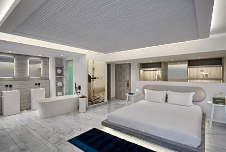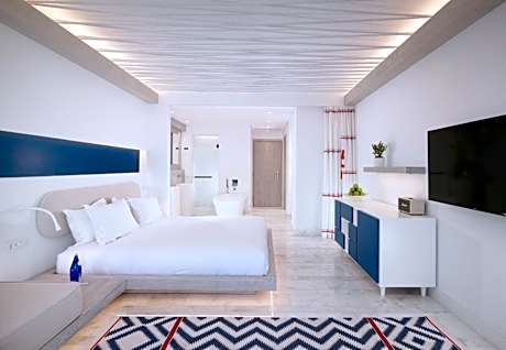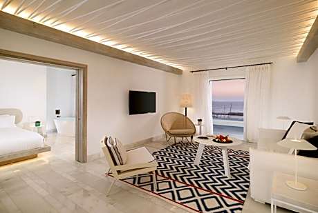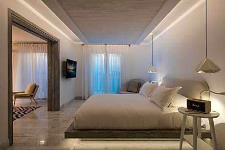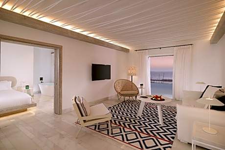 The brand new 5 star Mykonos Riviera is set in Tourlos port and marina and features ultra chic nautical-themed style, panoramic sunset views and luxurious accommodations options. Unparalleled services and amenities including an exquisite Spa, 2 restaurants, and an infinity pool with fiber optic lighting are also provided. The hotel is amphitheatrically built across the marina, merely few minutes from Agios Stefanos beach, and a short stroll from the scenic Mykonos Town. The spacious rooms and suites of Mykonos Riviera include nautical esthetics going hand in hand with their unique island chic style, minimalistic luxury and unobstructed Aegean sea views. Each room is fitted with open plan bathrooms, designer bathtubs, nautical-themed decoration, flat-screen TVs, Nespresso machines, ambiance lighting, and private terraces overlooking the Aegean sea and the port with its marina. Some rooms or suites also feature an outdoor hot tub or a private pool. A la carte breakfast is available each morning at the property. Mykonos Riviera also offers a car rental service and a business center and shuttle service from/to the airport upon extra charge and request. Staff at reception can assist around the clock with information on the area.