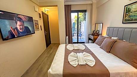Offering a garden and a terrace, Mykonut Boutique Suites in Fethiye is close to Fethiye Marina and Ece Saray Marina. With sea views, this accommodation features a swimming pool. The accommodation offers a hot tub, free Wifi throughout the property, and family rooms. The bed and breakfast will provide guests with air-conditioned units offering a wardrobe, a kettle, a fridge, a safety deposit box, a flat-screen TV, a balcony, and a private bathroom with a shower. There's also a well-equipped kitchen in some units equipped with a dishwasher, a microwave, and a stovetop. At the bed and breakfast, units are equipped with bed linen and towels. Guests at the bed and breakfast can enjoy an à la carte or a continental breakfast. There is a coffee shop and lounge. The area is popular for cycling, and bike rental and car rental are available at Mykonut Boutique Suites. Silence Beach is 1.3 miles from the accommodation, while Butterfly Valley is 16 miles away. Dalaman Airport is 37 miles from the property, and the property offers a paid airport shuttle service.