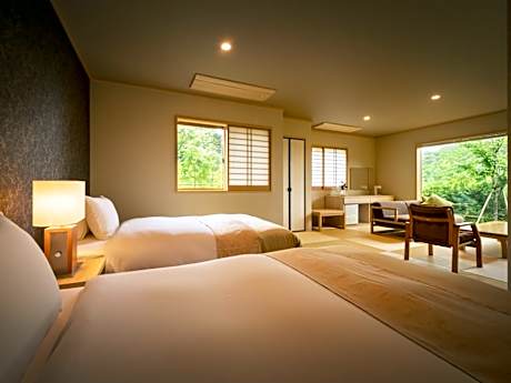 Nagisatei Taroan provides flawless service and all the necessary facilities for visitors. Stay connected with your associates, as complimentary Wi-Fi is available during your entire visit. The ryokan offers taxi and shuttle amenities for your ease in navigating around Miyako.When arriving by car, you'll be grateful for the on-site complimentary parking at ryokan.The ryokan offers reception assistance, including luggage storage, to ensure guest satisfaction.The ryokan also features a fireplace, providing a cozy ambience during cool evenings.The ryokan's daily housekeeping ensures an excellent option for your stay.To ensure the well-being and convenience of all visitors, smoking is strictly prohibited throughout the entire ryokan.Smoking is permitted solely in the specified smoking zones allocated by ryokan. In order to ensure the utmost level of relaxation, the guestrooms feature an inviting design and are equipped with all basic necessities, creating a delightful stay experience. To ensure a pleasant stay, a selection of rooms at ryokan come furnished with linen service and air conditioning, all designed with your ease in mind. Several chosen accommodations at Nagisatei Taroan have a balcony or terrace incorporated into the room design.Selected rooms offer in-room amusement like television as a source of entertainment for guests to enjoy. Within specific rooms, a refrigerator and instant tea is conveniently available for your use. Understanding the significance of bathroom facilities in enhancing visitor contentment, ryokan offers a hair dryer and toiletries within a few chosen chambers. Various excellent meal offerings at ryokan ensure that enticing and easily accessible options are constantly available.Throughout the day and night, guests can enjoy light refreshments with the ryokan offering vending machines.Throughout the day, engage in the entertaining activities available at Nagisatei Taroan .Unwind effortlessly each day by exploring the hot tub, conveniently situated within the ryokan.