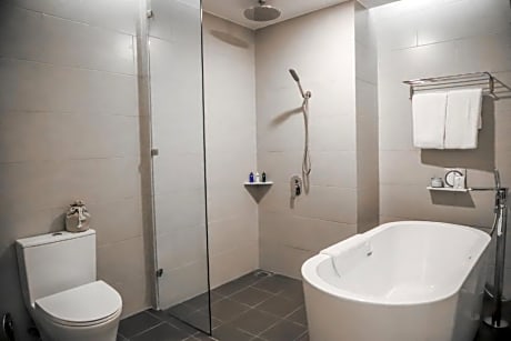 Spacious elegantly furnished room features air conditioning, a flat-screen TV and seating area. Modern private bathroom is fitted with a hairdryer, heated showers and plush bathrobes.