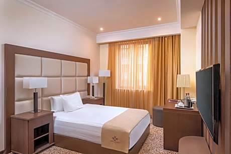 A 5-minute walk from Republic Square Metro Station, the National Museum and Fountains Park, National by Stellar Hotels, Yerevan is set in the center of Yerevan. This Art-Deco-style hotel features an indoor swimming pool, a gym, spa and Turkish bath. National by Stellar Hotels, Yerevan features high, cornice ceilings, large windows with luxurious drapes, fireplaces and colorful tiling work. The spacious rooms, studios and suites are decorated in attractive neutral tones. All rooms have free Wi-Fi, a flat-screen TV and a private bathroom with a bathrobe and free toiletries. The à la carte restaurant serves international cuisine, and you can enjoy lighter meals and drinks in Ava Cafe-Restaurant. The nearest bus stop is just 66 feet from the hotel and you can drive to Zvartnots International Airport in 20 minutes.
