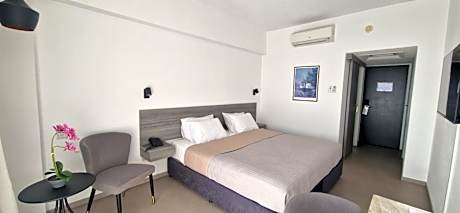 Located on Limassol waterfront, Navarria Blue Hotel offers affordable accommodations along with sea and mountain views and free Wi-Fi. Leisure facilities such as an outdoor pool, tennis court and table tennisare also available. Each of the contemporary rooms is fitted with air conditioning, mini fridge upon request and satellite TV. Guests can enjoy stunning sea and mountain views from their balconies. Navarria is within driving distance to Amathunda ruins and 2.8 mi from the city center of Limassol. There is public transport right outside the property and the hotel provides free parking. Larnaca Airport and Paphos Airport are both less than 37 mi away.