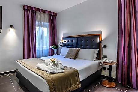 The Navona Colors Hotel is in the Baroque area of the historic center of Rome, 215 yards from Piazza Navona. The stylish rooms provide free Wi-Fi and air conditioning. Each room at the Navona Colors Hotel comes with cool tile floors, purple curtains and bedspreads and minimalist, dark furniture. Some rooms feature exposed wooden beams on the ceilings. A sweet Italian breakfast is served daily. The staff can assist you with tourist and travel info.