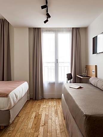 In the heart of Opéra, just a few minutes from a chic shopping area including the famous Galeries Lafayette, the theaters district and lively Montmartre. This hotel provides free Wi-Fi. Each air-conditioned room at the New Hotel Opéra has displays of unique artwork painted by a local artist. They also feature a private bathroom and satellite on a flat-screen TV. The roof-top room has hardwood floors and views of Paris. The Newhotel has facilities such as a 24-hour front desk, an elevator with access to all rooms and a terrace with a garden where guests can enjoy breakfast during the summer. The New Hotel Opéra is in a calm street near the Casino de Paris and Sacré Cœur. It is 460 ft from the Metro Station Liege and just under half a mile to Metro Station Saint-Lazare, so guests can discover the rest of Paris.