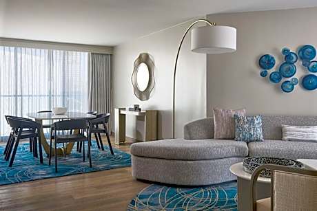 Overlooking the Pacific Ocean and Newport Country Club, this hotel offers 1 outdoor pools, a spa and fitness center. Rooms featuring warm woods and coastal neutrals with a focus on the views.. Each room features a flat-screen TV. Enjoy fresh coastal plates with a cosmopolitan perspective at VIEW Restaurant & Lounge, to craft coffee and local pastries from Elan Cafe & Bar, to poolside dining reimagined at Edge Bar. On-site SPA VEA is a full-service Newport Beach spa featuring premium body and skin-care treatments. The spa features 14 treatment rooms and a dedicated saltwater pool deck complete with cabanas, outdoor seating, and a roaring fireplace, men's and women’s relaxation lounges and private cabanas. VEA Newport Beach, a Marriott Resort & Spa is 8 mi from Laguna Beach, 19.3 kmfrom the Verizon Wireless Amphitheater, and 19 mi from Disneyland. Please note that the 50USD Daily Resort fee includes: Wi-Fi, beach chairs, 3-hour beach cruiser, fitness classes for 2, nearby transportation and golf bag storage. It is Valid for stays after 6/1/2022.