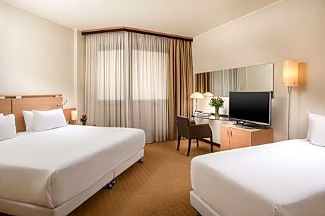 NH Bologna Villanova offers free Wi-Fi and free outdoor parking, 10 minutes' drive from BolognaFiere Exhibition Center. It is 4.3 mi from the city’s historic center and features a fitness area with indoor swimming pool. Elegantly furnished, hotel rooms have air conditioning and a satellite TV. Each comes with a private bathroom with bathrobes and a hairdryer. The breakfast buffet has a wide variety of choices. There are 24-hour snack machines with hot and cold food and drinks. A bus stopping at the front of the property the NH Bologna takes you to the city center. Bologna Centrale Train Station and the Guglielmo Marconi Airport are less than 15 minutes by car.