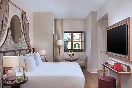 Located 1148 feet from Ponte Vecchio, NH Collection Firenze Porta Rossa is an elegant 5-star hotel in Florence. It offers uniquely decorated rooms with modern décor, free Wi-Fi and a flat-screen TV. All rooms at the Firenze Porta Rossa hotel include air conditioning, a mini-bar and private bathroom. Some also feature original frescoes. Ironing facilities are available on request. An extensive buffet breakfast is served daily in the elegant dining room. Located in a pedestrian area, NH Collection Firenze Porta Rossa is 1640 feet from Florence Cathedral and 984 feet from the Uffizi. The 12th-century Monalda Tower is also part of the hotel.