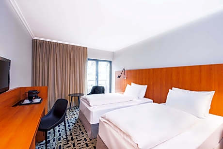 Located in the modern business district of Andel, bordering the historic city center, the NH Prague consists of 2 separate buildings connected by a cable car, and offers panoramic views over Prague. Free WiFi is available in both buildings. On-site private parking is possible at a surcharge. All rooms at NH Prague are air-conditioned, and come with a flat-screen TV with satellite channels and a mini-bar. A free coffee and tea service is available. You can enjoy excellent cuisine in the restaurants or on the terrace overlooking the entire city of Prague. The bar invites you to unwind after a rewarding day. The in-house health area features sauna and steam bath facilities, massage treatments, and a fitness center as well. A jogging path, tennis courts, 2 children playgrounds and a volleyball court are close by, on Mrazovka Hill. Set right next to an entertainment and shopping center, NH Prague is located a 5-minute walking distance from the Underground and Tram Station Andel and a 15-minute drive away from Prague Airport.