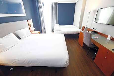 Hotel Travelodge Madrid Coslada Aeropuerto is located less than 5 minutes walking from Coslada center and you can reach Madrid city center by train or subway in 15 minutes. Also it has a good location to reach the airport and IFEMA fairground apart from direct connectivity to Riyad Air Metropolitano Stadium. In the hotel surroundings there are plenty of bars and restaurants of national and international cuisine. Easy connection to Coslada and Madrid city center and excellent connections to the airport, IFEMA, Plenilunio mall and Riyad Air Metropolitano Stadium. Our 78 rooms are decorated in warm tones and feature parquet floors, a private bathroom, big flat TV screen, heater and a working desk. The rooms are equipped with a mini-bar and a safe. Private parking is available for a fee. There is also free WiFi in all the hotel. The hotel has a 24 hours opening bar-cafe and serves a rich breakfast buffet. There are several bars and restaurants within a 10 minutes walk. Next to the hotel there is a bus stop that connects directly with the airport and Metropolitano stadium. We have two superior rooms on the roof with its own panoramic view terrace. License Number(s): HM-4247