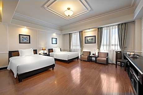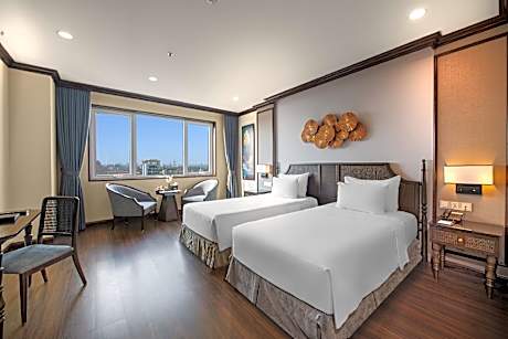 Ninh Binh Legend Hotel provides flawless service and all the necessary facilities for visitors. Stay connected with your associates, as complimentary Wi-Fi is available during your entire visit.To facilitate your arrival and departure, you can pre-book airport transfer services prior to checking in. The hotel offers taxi, car hire and shuttle amenities for your ease in navigating around Ninh Bình.When arriving by car, you'll be grateful for the on-site complimentary parking at hotel.The hotel offers reception amenities including concierge service, express check-in or check-out, luggage storage and safety deposit boxes to ensure a comfortable stay for guests.Should you require assistance, the ticket service and tours can also aid in booking tickets and securing reservations at the finest shows and events in the vicinity. Whether it's an extended stay or simply needing fresh attire, dry cleaning service and laundry service provided by hotel ensures your cherished travel garments stay spotless and accessible.Your stay will be comfortable with the presence of 24-hour room service, room service and daily housekeeping as an in-room amenity for your relaxation and enjoyment.Smoking is permitted solely in the specified smoking zones allocated by hotel.In order to ensure the utmost level of relaxation, the guestrooms feature an inviting design and are equipped with all basic necessities, creating a delightful stay experience.To ensure a pleasant stay, a selection of rooms at hotel come furnished with blackout curtains and air conditioning, all designed with your ease in mind. At Ninh Binh Legend Hotel, various room configurations are available, featuring separate living room and balcony or terrace in some rooms.In select rooms, visitors can enjoy a touch of amusement with the availability of television, in-room video streaming and cable TV for their entertainment needs.Within specific rooms, a refrigerator, bottled water, a coffee or tea maker, instant coffee, instant tea and mini bar is conveniently available for your use.Understanding the significance of bathroom facilities in enhancing visitor contentment, hotel offers a hair dryer, toiletries and bathrobes within a few chosen chambers.To experience refined leisure, do not miss the opportunity to drop by the executive lounge. Start your day stress-free at Ninh Binh Legend Hotel as breakfast is made available for you on the premises. How about kicking off each day of your getaway with a delicious cup of coffee? At the hotel, relish in the invigorating taste of a freshly brewed, excellent coffee. Various excellent meal offerings at hotel ensure that enticing and easily accessible options are constantly available. Upon arrival, make sure to explore karaoke rooms, bar and nightclub to experience enjoyable evening entertainment within the premises. Throughout the day and night, guests can enjoy light refreshments with the hotel offering vending machines. Visitors wishing to create their personal culinary delights will appreciate the on-site BBQ facilities provided at this establishment.Throughout the day, engage in the entertaining activities available at Ninh Binh Legend Hotel.Make sure to discover the readily available beach at hotel. Unwind and conclude each day delightfully by stopping by massage, hot tub, salon, steam room, spa and sauna, ensuring a soothing experience. Unwind by the pool at hotel and cherish a leisurely moment.Enjoy a refreshing beverage al fresco at hotel's poolside bar savoring your preferred concoction. Guests who enjoy maintaining their fitness regimen while on holiday can visit the fitness center provided by hotel.