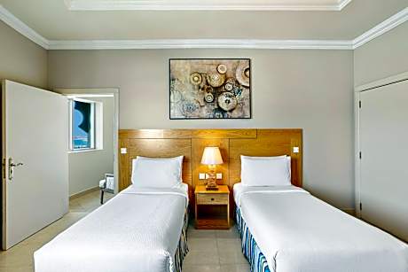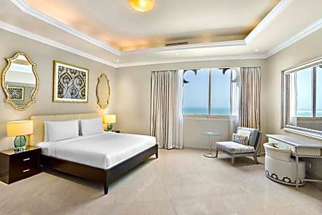 Located in the upscale area of Al Hamra, Al Hamra Residence offers 143 spacious elegant rooms and suites on the Al Hamra beachfront adjacent to the 18-hole championship golf course. Offering the ultimate relaxation experience featuring a 150-yard-long expansive private beach, two large outdoor pools nestled amid a sun-lounger terrace, perfect for soaking up the sun's rays. Little ones can splash around in the children's pool while you keep up with your fitness routine in the gym. The spacious rooms and suites that range from 50-346 square yards offer stunning sea views of the Arabian Gulf or the golf course, each adorned with modern elegant décor and equipped with complimentary Wi-Fi, a flat-screen TV, mini-bar, and a spacious living area for added comfort. Savor culinary delights at our Social Kitchen Restaurant, where buffet breakfast, lunch, and dinner await. Indulge in cocktails, fresh salads, and grilled specialties at the Fresca Pool Bar, the ideal spot for a refreshing drink by the water. Contemplate timelessness and watch the sun set on the horizon as you sip your favorite mocktails from White Beach Bar. For the active traveler, there are tennis courts and a variety of water sports activities to keep you entertained. And because your furry friends deserve a vacation too, we are proud to be a pet-friendly hotel, proof of Pet Vaccination must be produced upon checking-in with a pet.