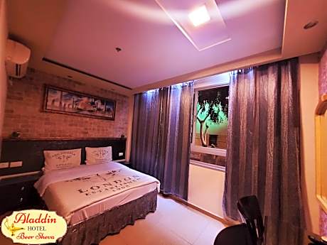 Aladdin Hotel Beer Sheva offers top-notch services and amenities, ensuring guests experience utmost comfort.Complimentary internet access is available in the hotel to ensure you stay connected during your visit. Arrange your trips to and from the airport using the hotel's convenient transportation services booking. Continuously receive the support you require through front desk amenities such as concierge service, luggage storage and safety deposit boxes. At the hotel, their ticket service and tours is also capable of assisting with booking tickets and securing reservations for entertainment and adventures. Always look your best in your preferred attire with the dry cleaning service and laundry service provided at Aladdin Hotel Beer Sheva. Craving relaxation? In-room amenities such as room service and daily housekeeping allow you to maximize your time spent inside the room.For the health and well-being of all guests and staff, smoking is restricted exclusively to assigned zones. Accommodations come equipped with all the conveniences required for a restful night's slumber.A selection of rooms feature linen service and air conditioning to ensure your comfort and convenience. A few accommodations at Aladdin Hotel Beer Sheva also include unique design elements like a balcony or terrace. A number of rooms feature cable TV for guest amusement and enjoyment. In certain rooms, the hotel offers visitors access to a refrigerator and a coffee or tea maker. Aladdin Hotel Beer Sheva offers a hair dryer and toiletries in the restrooms of specific accommodations. A delightful breakfast is the perfect way to begin your day, and at Aladdin Hotel Beer Sheva, you can always indulge in a scrumptious meal on-site.An evening spent at hotel's bar can offer as much enjoyment as venturing out with your fellow travelers.Are you inclined to prepare your own dishes? You will surely appreciate having the on-site shared kitchen available.