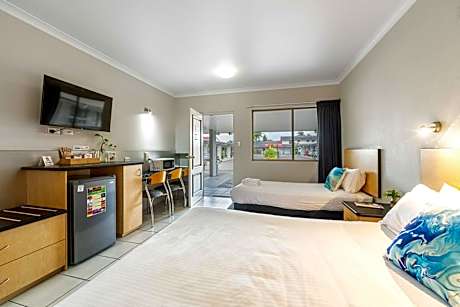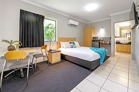 Alara Motor Inn is a 4-star motel located on the Bruce Highway in Mackay and features a licensed restaurant. It is 5 minutes' drive from Mackay's town center, Mackay Airport, beaches and amenities. Each air-conditioned room offers a refrigerator, tea/coffee making facilities and bed linen. All rooms have a private bathroom with a shower, hairdryer, ironing facilities and complimentary toiletries. All rooms feature a flat-screen TV. Some Queen rooms offer the option of a spa bath or bath instead of a shower. Jimmy D's is a fully-licensed restaurant offering an a la carte menu . Choose to sit inside the restaurant or dine alfresco on the veranda, overlooking the pool and tropical surrounds. Room service is also available should you wish to relax in your room.