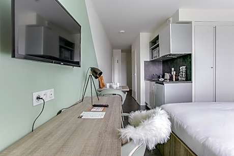 A good location for a hassle-free getaway in Palaiseau, All Suites Appart Hôtel - Palaiseau - Massy TGV is a condo hotel surrounded by views of the city. The property features a terrace, bar, and private parking among other facilities. This 3-star condo hotel offers a 24-hour front desk and an elevator. The accommodation features a sauna, free Wifi throughout the property, and family rooms. At the condo hotel, every unit is fitted with a desk, a flat-screen TV, a private bathroom, bed linen, and towels. A microwave, a fridge, and stovetop are also available in the kitchenette, as well as a coffee machine. The rooms are equipped with heating facilities. The condo hotel offers a buffet or continental breakfast. There is a snack bar and lounge. Palace of Versailles is 11 miles from All Suites Appart Hôtel - Palaiseau - Massy TGV, while Parc des Princes is 11 miles from the property. Paris - Orly Airport is 4.3 miles away.