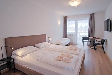 The double room features a seating area, a wardrobe, a balcony with mountain views as well as a private bathroom boasting a shower. The unit has 2 beds.