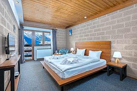 Great care is taken to ensure guests experience comfort through top-notch services and amenities. Stay connected with your associates, as complimentary Wi-Fi is available during your entire visit.To facilitate your arrival and departure, you can pre-book airport transfer services prior to checking in. The hotel offers taxi amenities to assist you in discovering your desired offerings in Kazbegi.When arriving by car, you'll be grateful for the on-site complimentary parking at hotel.The hotel offers reception amenities including express check-in or check-out and luggage storage to ensure a comfortable stay for guests.Should you require it, the tours can even assist you in booking tickets and securing reservations for the finest shows and events in the vicinity.The hotel also features a fireplace, providing a cozy ambience during cool evenings.The hotel's daily housekeeping ensures an excellent option for your stay.Smoking is permitted solely in the specified smoking zones allocated by hotel. In order to ensure the utmost level of relaxation, the guestrooms feature an inviting design and are equipped with all basic necessities, creating a delightful stay experience.To ensure your satisfaction, certain rooms in the hotel come fitted with linen service for a more pleasant stay.Selected rooms offer in-room amusement like television as a source of entertainment for guests to enjoy. Within specific rooms, bottled water, a coffee or tea maker, instant coffee and instant tea is conveniently available for your use.Understanding the significance of bathroom facilities in enhancing visitor contentment, hotel offers a hair dryer, toiletries and bathrobes within a few chosen chambers. Start your day stress-free at Alpine Lounge Kazbegi as breakfast is made available for you on the premises. Various excellent meal offerings at hotel ensure that enticing and easily accessible options are constantly available.Upon your arrival, don't miss experiencing bar for enjoyable in-house evening entertainment.Throughout the day, engage in the entertaining activities available at Alpine Lounge Kazbegi.Experience the perfection of your winter getaway with ski slopes offered to enhance your stay.Unwind and conclude each day delightfully by stopping by steam room and sauna, ensuring a soothing experience. License Number(s): 405057655