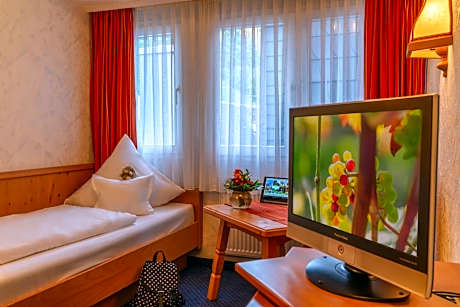This family-run hotel is set in a half-timbered building directly on the historic market square in Bacharach. The Altkölnischer Hof is an ideal base for exploring the UNESCO Middle Rhine Valley. The nonsmoking rooms of the Altkölnischer Hof Bacharach feature a country-style design and traditional wooden furniture. All include a satellite flat-screen TV and a private bathroom, and WiFi is also available in all areas free of charge. A breakfast buffet is served each morning in the elegant restaurant. Regional Rhineland fish, game and roast specialties can be enjoyed here or on the terrace. Nearby hiking trails include the Rheinsteig and the Rhein-Burgen-Weg (Rhine castles trail). The world-famous Lorelei Rock is just 6.8 mi away. The hotel's car park is located 492 feet away. Bacharach Train Station is just 1312 feet from the Altkölnischer Hof. Hahn Airport, Koblenz and Wiesbaden can all be reached within a 45-minute drive.