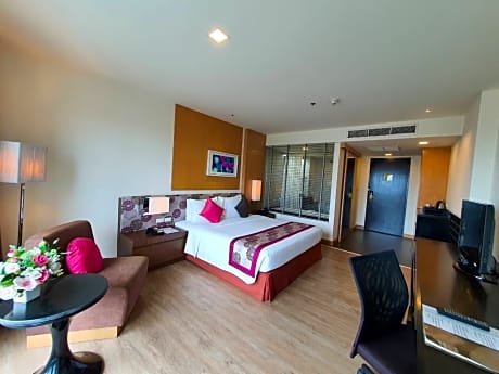 Amaranth Suvarnabhumi Hotel - Gratis Suvarnabhumi Airport Shuttle biedt eersteklas services en voorzieningen, waardoor gasten optimaal comfort ervaren. Gratis internet is beschikbaar in het hotel, zodat u tijdens uw bezoek verbonden blijft. Regel uw reis van en naar de luchthaven met de handige vervoersservice van het hotel. Ontdek de wonderen van Bangkok met gemak door gebruik te maken van de taxi- en shuttleservices. Gratis parkeren is beschikbaar voor gasten. U ontvangt continu de ondersteuning die u nodig heeft via de receptiefaciliteiten zoals een conciërgeservice, bagageopslag en kluisjes. De ticketservice en rondleidingen van het hotel kunnen u ook helpen met het boeken van tickets en het reserveren van reserveringen voor entertainment en avonturen. Koude nachten worden aangenamer dan zwoele, terwijl u zich nestelt bij de uitnodigende haard van het hotel. Zie er altijd op uw best uit in uw favoriete kleding met de stomerij- en wasservice van Amaranth Suvarnabhumi Hotel - Gratis Suvarnabhumi Airport Shuttle. Zin in ontspanning? Voorzieningen op de kamer, zoals roomservice en dagelijkse schoonmaak, zorgen ervoor dat u uw tijd op de kamer optimaal kunt benutten. Om gezondheidsredenen is roken ten strengste verboden in het gehele hotel. Voor de gezondheid en het welzijn van alle gasten en medewerkers is roken uitsluitend toegestaan in aangewezen zones. De accommodaties zijn voorzien van alle gemakken voor een goede nachtrust. Een aantal kamers beschikt over linnenservice, verduisteringsgordijnen en airconditioning voor optimaal comfort. Sommige accommodaties van Amaranth Suvarnabhumi Hotel - Gratis Suvarnabhumi Airport Shuttle hebben ook unieke designelementen zoals een balkon of terras. Een aantal geselecteerde kamers is uitgerust met televisie en kabeltelevisie voor een aangenaam verblijf. In bepaalde kamers biedt het hotel gasten toegang tot een koelkast, mineraalwater, een koffie- of theefaciliteit, oploskoffie, oplosthee en een minibar. Amaranth Suvarnabhumi Hotel - Gratis Suvarnabhumi Airport Shuttle biedt een föhn, toiletartikelen en badjassen in de toiletten van bepaalde accommodaties. Een bijkomend voordeel voor gasten is de executive lounge, die een buitengewoon gezellige en uitstekend ingerichte omgeving biedt om te ontspannen. Een heerlijk ontbijt is de perfecte manier om uw dag te beginnen, en bij Amaranth Suvarnabhumi Hotel - Free Suvarnabhumi Airport Shuttle kunt u altijd genieten van een heerlijke maaltijd ter plaatse. Iedereen is dol op een heerlijke kop koffie! Een koffiebar ter plaatse zorgt ervoor dat u elke ochtend kunt genieten van een kopje authentieke, vers gezette koffie - of wanneer u maar wilt. Laat uw reis vrij zijn van honger! De eetgelegenheden ter plaatse bieden heerlijke en toegankelijke maaltijden. Een avond doorbrengen in de bar van het hotel kan net zo leuk zijn als eropuit trekken met uw medereizigers. Amaranth Suvarnabhumi Hotel - Free Suvarnabhumi Airport Shuttle biedt een uitstekend aanbod aan recreatieve voorzieningen waar gasten van kunnen genieten. Sluit uw dag in alle rust af met een bezoek aan de sauna, die zich direct bij het hotel bevindt. Bij Amaranth Suvarnabhumi Hotel - Free Suvarnabhumi Airport Shuttle garandeert een breed scala aan voorzieningen een bevredigende ervaring tijdens uw verblijf. Maak uw vakantie echt onvergetelijk door een verfrissende duik te nemen in het zwembad. Bij Amaranth Suvarnabhumi Hotel - Free Suvarnabhumi Airport Shuttle biedt de bar bij het zwembad een uitstekende reden om urenlang in uw badkleding te genieten. In het fitnesscentrum van het hotel kunt u uw dagelijkse oefeningen doen of gewoon uw jetlag verlichten door te zweten.