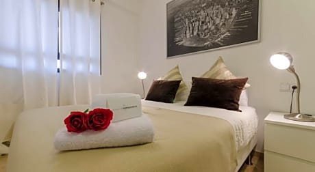 Located in Cordoba's heart, within the historic Judería District, Apartamentos Duque de Hornachuelos offers a stylish aparthotel experience just off Tendillas Square. Explore the city's ancient charm, a UNESCO World Heritage Site, with easy access to the Cathedral-Mosque, Roman Bridge, Roman Temple, and Roman Theatre. These bright, contemporary apartments, sleeping up to seven people, feature two or three bedrooms, free Wi-Fi, air conditioning, 32 flat-screen TVs, marble floors, and fully equipped modern kitchens. Penthouses boast large private terraces with city views. Discover the community patio showcasing archaeological remains of Roman baths. An excellent alternative to traditional hotels, this aparthotel is perfect for families and groups. For group reservations (more than one apartment), special charges and a €200 deposit per apartment apply. A credit card number is required at check-in to secure your reservation and will only be used in case of significant damage or misconduct. Please inform us of your arrival time by calling +34 674166497 or emailing reservas@apartamentosduquedehornachuelos. com.