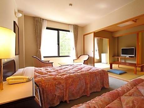 Features Western-style beds and a tatami (woven-straw) seating area. This air-conditioned room features a flat-screen TV, a fridge and an electric kettle with green tea bags. All rooms have mountain views and an private bathroom with a hairdryer.