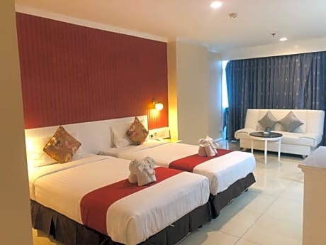 Located in Bangna, 2.7 miles from Bangkok International Trade and Exhibition Center BITEC, Bay Hotel Srinakarin has accommodations with a fitness center, free private parking, a garden and a shared lounge. The property has a bar, as well as a restaurant serving Thai cuisine. The property provides a 24-hour front desk, airport transportation, room service and free WiFi. Complete with a private bathroom equipped with a shower and free toiletries, the rooms at the hotel have a flat-screen TV and air conditioning, and certain rooms contain a seating area. Guest rooms will provide guests with a desk and an electric tea pot. A buffet, à la carte or continental breakfast is served at the property. Mega Bangna is 4.1 miles from Bay Hotel Srinakarin, while Queen Sirikit National Convention Center is 8.7 miles from the property. Suvarnabhumi Airport is 10 miles away.
