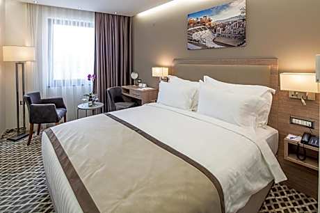 Located in Plovdiv, a 13-minute walk from International Fair Plovdiv, Best Western Premier Plovdiv Hills provides accommodations with a fitness center, free private parking, a garden and a shared lounge. Among the various facilities are a terrace and a bar. The property has a 24-hour front desk, airport transportation, room service and free WiFi throughout the property. Guest rooms at the hotel come with air conditioning, a seating area, a flat-screen TV with satellite channels, a safety deposit box and a private bathroom with a bidet, free toiletries and a hairdryer. Each room comes with an electric tea pot, while selected rooms are equipped with a kitchen with a fridge, a dishwasher and an oven. The rooms include a desk. Guests at Best Western Premier Plovdiv Hills can enjoy a buffet breakfast. At the accommodation you'll find a restaurant serving Mediterranean and European cuisine. Vegetarian, vegan and gluten-free options can also be requested. A business center and a car rental service are also offered by Best Western Premier Plovdiv Hills. Plovdiv Roman Theater is 1.6 miles from the hotel, while Plovdiv Plaza is 3 miles away. Plovdiv International Airport is 11 miles from the property.