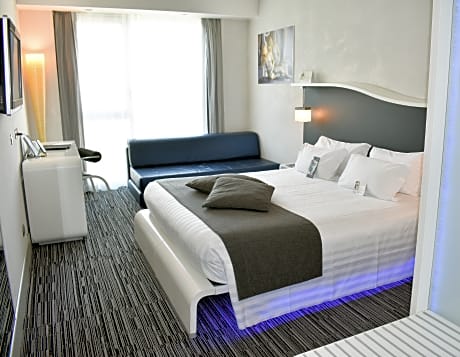 This small room comes with a 55" Smart TV with satellite channels, mini-bar, electric kettle and a chromotherapy system. WiFi is free.The private bathroom includes bathrobe, slippers, free toiletries and a shower.