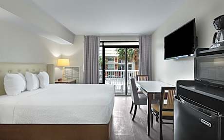 This oceanfront resort is 2.4 mi from the Myrtle Beach Airport. The resort features 3 outdoor pools and one indoor pool. Rooms feature a flat-screen TV and free Wi-Fi access. A microwave, refrigerator, and coffee-making facilities are featured in all guest rooms at Captain’s Quarters Resort. The rooms have an private bathroom with a hairdryer. A seating area and TV are also provided. A 24-hour front desk and laundry facilities are available for guests’ convenience. Hot tub is on site at Captain’s Quarters. A fitness center and restaurant are also available. The resort is 3.5 mi from Broadway at the Beach, 2.6 mi from Myrtle Beach Convention Center, and 3.7 mi from The Market Common. Family Kingdom Amusement Park is 2297 ft away.