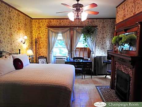 A good location for a relaxing stay in Champaign, Champaign Garden Inn is a bed and breakfast surrounded by views of the quiet street. The property features a garden, terrace, and parking on-site among other facilities. The air-conditioned accommodations are a 8-minute walk from Orpheum Children'S Science Museum. The bed and breakfast provides garden views, a picnic area, and free Wifi is available throughout the property. At the bed and breakfast, all units are fitted with a wardrobe, a flat-screen TV, a private bathroom, bed linen, and towels. There's also a dressing room in some of the units. The rooms are equipped with heating facilities. Buffet and continental breakfast options with fresh pastries, pancakes, and fruit are available. There is a snack bar and lounge. Illini Union is 1.9 miles from the bed and breakfast, while Champaign Memorial Stadium is 2.2 miles away. University of Illinois-Willard Airport is 6.8 miles from the property.