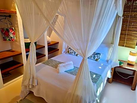 Chez Jojo is a recently renovated vacation home in Trancoso near Trancoso Beach. This vacation home provides air-conditioned accommodations with a balcony and free Wifi. The accommodation offers airport transfers, while a bicycle rental service is also available. Each unit features a terrace, a fully equipped kitchen with a toaster, a dining area, and a flat-screen TV, while the private bathroom includes a walk-in shower and a hair dryer. A patio with an outdoor dining area and garden views is offered in all units. At the vacation home, every unit has bed linen and towels. A selection of options including local specialities, fresh pastries, and fruit are served for the buffet breakfast. For those nights when you'd rather not eat out, you can have groceries delivered. A car rental service is available at the vacation home. Quadrado Square is a 8-minute walk from Chez Jojo, while Eco Park Arraial d'Ajuda is 11 miles away. Porto Seguro Airport is 16 miles from the property.