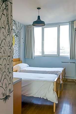 The room features walls intervened by an artist, parquet floors and a private bathroom with shower. Air conditioning and heating device. Security lockers also included.
