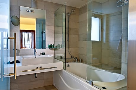 Located directly opposite the Olympic Stadium Athens (OAKA), this 4-star hotel offers an indoor parking area, a stylish restaurant, and soundproof rooms with free Wi-Fi and 22-inch flat-screen TV. The modern guest rooms of the Civitel Olympic are spacious and feature a comfortable bed and modern bathroom with bathtub, KORRES bathroom amenities and hairdryer. Free pillow menu, a laptop-size safe, tea/coffee maker and a free fully stocked mini-bar are provided. Civitel’s International-cuisine restaurant serves American buffet breakfast, lunch and dinner a la carte. At noon guests may enjoy a light lunch with toasted sandwiches and delicious snacks. Drinks are served at the hotel’s bar. Civitel Olympic is across the Helexpo Palace Exhibition & Conference Center. Featuring its own 250-person-capacity multipurpose rooftop room, the hotel can host meetings and congresses on site. Athens’ largest shopping centers are close by. The Olympic Civitel is just 5 minutes’ walk from the Kifisias Suburban railway station. The center of Athens is 5 mi away and the hotel enjoys direct proximity to Attiki Odos.