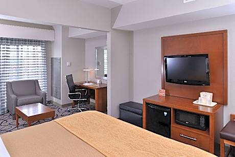 Comfort Inn & Suites Frisco - Plano biedt eersteklas services en voorzieningen, waardoor gasten optimaal comfort ervaren. Zorg voor naadloze communicatie dankzij de gratis wifi in het hotel. Voor bezoekers die met de auto reizen, is er gratis parkeergelegenheid beschikbaar. De receptie van het hotel biedt assistentie met kluisjes. Maak in het hotel gebruik van de stomerij- en wasservice om uw geliefde reiskleding fris te houden, zodat u minder kleding hoeft mee te nemen. Tijdens ontspannen dagen en avonden zorgen voorzieningen zoals dagelijkse schoonmaak ervoor dat u optimaal van uw accommodatie kunt genieten. Houd er rekening mee dat roken in het hotel verboden is om frisse lucht voor alle bezoekers te garanderen. Voor bezoekers die willen roken, zijn er speciale rookzones. Bij Comfort Inn & Suites Frisco - Plano is elke kamer voorzien van handige voorzieningen en accessoires voor een comfortabel verblijf. Verbeter uw hotelervaring met de wetenschap dat sommige kamers zijn uitgerust met linnenservice en verduisteringsgordijnen voor uw gemak. Een aantal accommodaties in Comfort Inn & Suites Frisco - Plano bieden unieke designelementen, zoals een aparte woonkamer. Sommige kamers beschikken over amusementsvoorzieningen zoals een dagelijkse krant, televisie en kabeltelevisie, wat gasten een aangenaam verblijf biedt. In een aantal kamers in het hotel is een koelkast, een koffiezetapparaat of theezetapparaat en een minibar beschikbaar om aan uw wensen te voldoen. In het hotel zijn bepaalde gastenbadkamers uitgerust met essentiële toiletartikelen, zoals een föhn en toiletartikelen, voor een comfortabel verblijf. Begin uw dag zorgeloos in Comfort Inn & Suites Frisco - Plano, waar u gratis kunt ontbijten. Begin uw dag verfrist en verkwikt met een heerlijke kop kwaliteitskoffie in het café in het hotel. Geniet van een gezellige avond met uw medereizigers aan de bar van het hotel. Blinkt u uit in koken? Bereid uw eigen gerechten ter plaatse met de barbecuefaciliteiten en gedeelde keuken van het hotel. Comfort Inn & Suites Frisco - Plano biedt een uitstekend assortiment aan recreatieve voorzieningen waar gasten van kunnen genieten. Sluit uw vakantie perfect af met een bezoek aan een massage, spa en sauna op uw laatste dagen. Breng zeker minstens één keer tijdens uw verblijf een bezoek aan het zwembad van het hotel. Ontdek de fitnessfaciliteiten van het hotel om uw gezondheid en kracht op peil te houden tijdens uw vakantie.