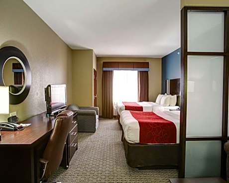 Het Comfort Suites Bastrop hotel ligt op enkele minuten afstand van het historische Bastrop. Dit gebied staat op de National Register of Historic Places en biedt een aantal unieke monumenten en culturele attracties. Andere bezienswaardigheden in de buurt van dit hotel zijn onder andere: McKinney Falls Nature Park, Bastrop Medical Center, het onderzoekscentrum van het University of Texas MD Anderson Cancer Center, het Dinosaur Park museum en het jaarlijkse festival Frontier Days. Het hotel ligt in de buurt van vele parken, recreatiegebieden in de buitenlucht en golfbanen. Er zijn veel uitgaansgelegenheden, speciaalzaken, winkelcentra en andere winkels in de buurt. Er zijn diverse restaurants in de buurt; verschillende bevinden zich binnen 1,6 km van het hotel. Gasten kunnen genieten van volledige voorzieningen zoals gratis draadloos high-speed internet. Uw ochtendontbijt is rijk aan warme gerechten, waardoor het ontbijt bij Comfort Suites Bastrop de perfecte manier is om uw dag te beginnen. Geniet van ons gratis warme ontbijt met eieren, vlees, yoghurt en vers fruit, ontbijtgranen en meer, inclusief uw keuze uit warme wafels. Als u vroeg vertrekt, is er twee uur voor het ontbijt een Your Suite Success Grab & Go-tas beschikbaar. Zakelijke reizigers die hier verblijven, kunnen rekenen op extra gemakken, zoals toegang tot kopieer- en faxservice en vergaderfaciliteiten. Alle kamers zijn voorzien van een flatscreen-tv, magnetron, koelkast, koffiezetapparaat, gebogen douchestang, föhn, slaapbank, ruime bureaus, strijkijzers, strijkplanken en kabeltelevisie. Houd uw elektronische apparaten opgeladen met de oplaadpunten, waaronder stopcontacten voor netstroom en USB-aansluitingen in alle kamers. Gasten kunnen gebruikmaken van een wasserette met muntsysteem en er is voldoende parkeergelegenheid.
