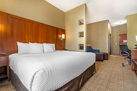 Comfort Suites Gallup East Route 66 and I-40 is located in Gallup. Featuring a fitness center, the 3-star hotel has air-conditioned rooms with free WiFi, each with a private bathroom. The hotel provides an indoor pool, spa center and a 24-hour front desk. At the hotel, all rooms come with a desk. All guest rooms at Comfort Suites Gallup East Route 66 and I-40 are equipped with a seating area and a flat-screen TV with satellite channels. A buffet, continental or American breakfast is available at the property. A business center and vending machines with snacks and drinks are available on site at the accommodation.