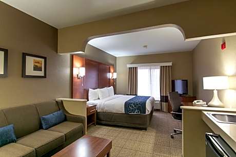 Comfort Suites Austin NW Lakeline is just minutes from all of Austin's major attractions, including the Lakeline Mall, Cedar Park Center, the Arboretum shopping center and Concordia University. The Austin-Bergstrom International Airport, the University of Texas at Austin and Lake Travis are minutes away from this hotel. Circuit of the Americas race track, host to the Formula 1 United States Grand Prix, is also nearby. The hotel is close to many educational institutions and attractions in downtown Austin and the surrounding area. Guests will enjoy having easy access to the 6th Street arts and entertainment district, Lake Austin, Texas Capitol building, the Austin Convention Center, Frank Erwin Center and the Dell Diamond, home of the Round Rock Express minor league baseball team. Southwestern University and St. Edward's University are within 20 miles. Many restaurants and cocktail lounges are located near the hotel. Guests will enjoy many full-service amenities, including: Free high-speed Internet access, Free weekday newspaper , Free local calls and Fitness center. Your Morning Breakfast is full of hot options, making breakfast at Comfort Suites Austin NW Lakeline the perfect way to start your day. Enjoy a free hot breakfast featuring eggs, meat, yogurt, fresh fruit, cereal and more, including your choice of hot waffle flavors. If you're leaving early, a Your Suite Success Grab & Go bag is available for the two hours prior to breakfast. Be sure to enjoy the outdoor pool and hot tub. Business travelers will appreciate a fully equipped business center, dual telephone lines, voice mail and a meeting room. All guest rooms have refrigerators, microwaves, irons, ironing boards and cable televisions. Keep your electronic devices charged with the recharge device including AC and USB outlets provided in all guest rooms. Rooms with whirlpool bathtubs are available. The hotel also has an on-site guest laundry facility.