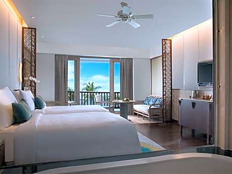 Great care is taken to ensure guests experience comfort through top-notch services and amenities. Stay connected with your associates, as complimentary Wi-Fi is available during your entire visit.The hotel offers shuttle amenities to assist you in discovering your desired offerings in Bali. When arriving by car, you'll be grateful for the on-site complimentary parking at hotel.The hotel offers reception amenities including concierge service, luggage storage and safety deposit boxes to ensure a comfortable stay for guests. Should you require it, the tours can even assist you in booking tickets and securing reservations for the finest shows and events in the vicinity.Whether you're here for an extended stay or simply require fresh garments, the hotel ensures your cherished travel attire remains spotless and accessible with the convenience of laundry service located on the premises.Your stay will be comfortable with the presence of 24-hour room service, room service and daily housekeeping as an in-room amenity for your relaxation and enjoyment. In order to ensure the utmost level of relaxation, the guestrooms feature an inviting design and are equipped with all basic necessities, creating a delightful stay experience. To ensure your satisfaction, certain rooms in the hotel come fitted with blackout curtains for a more pleasant stay. Several chosen accommodations at Conrad Bali have a balcony or terrace incorporated into the room design.In select rooms, visitors can enjoy a touch of amusement with the availability of television, in-room video streaming and cable TV for their entertainment needs.Within specific rooms, a refrigerator, instant tea and mini bar is conveniently available for your use.Understanding the significance of bathroom facilities in enhancing visitor contentment, hotel offers a hair dryer, toiletries and bathrobes within a few chosen chambers. Start your day stress-free at Conrad Bali as breakfast is made available for you on the premises.Various excellent meal offerings at hotel ensure that enticing and easily accessible options are constantly available. Upon your arrival, don't miss experiencing bar for enjoyable in-house evening entertainment. Throughout the day, engage in the entertaining activities available at Conrad Bali.Make sure to discover the readily available beach at hotel.Unwind and conclude each day delightfully by stopping by hot tub and spa, ensuring a soothing experience.Unwind by the pool at hotel and cherish a leisurely moment.Guests who enjoy maintaining their fitness regimen while on holiday can visit the fitness center provided by hotel.