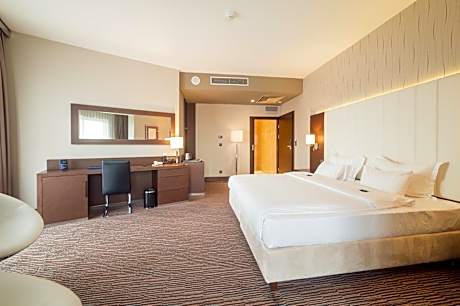 4-star Copernicus Toruń Hotel is located on the shore of Wisła River, by picturesque Planty Park, and 1640 feet from the Old Town, within a 600-yard distance from the leaning tower of Toruń and 2297 feet from the Town Square. Original and modern building features an indoor and outdoor pool, a spa and wellness center, as well as rooms with a great view of the Old Town, panorama of Vistula or a park. All rooms in Copernicus Toruń are air-conditioned and have high-class furniture and bathrooms featuring marble elements. They boast a flat-screen TV, a safe and a mini-bar. Some feature a balcony. Guests of the hotel can enjoy a lobby bar, a bowling alley and a nightclub, as well as laundry and ironing service. Buffet breakfast is served in the restaurant, which also features original dishes created by a hotel chef. Copernicus also features a hairdressing salon. The hotel is surrounded by a number of pubs, restaurants and important sights. Toruń Miasto Train Station is located 1 mi away, and Toruń Bus Station – 0.9 mi away. A hotel facility is obliged to apply standards for the protection of minors, in particular to establish the identity of the minor and his or her relationship with the adult with whom he or she is staying in the facility. (Act of 13 May 2016 on Counteracting the Threats of Sexual Offenses and Protection of Minors). License Number(s): PL9532234772