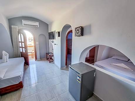Coral Reefs Hotel Dahab features a fitness center, garden, a shared lounge and terrace in Dahab. Providing a bar, the property is located within a 9-minute walk of Dahab Beach. The property provides a 24-hour front desk, airport transportation, a shared kitchen and free WiFi. At the hotel, each room comes with a closet. Complete with a private bathroom equipped with a shower, guest rooms at Coral Reefs Hotel Dahab have a flat-screen TV and air conditioning, and certain rooms include a balcony. At the accommodation rooms are equipped with a seating area. Breakfast is available, and includes à la carte, continental and vegetarian options. Sharm el-Sheikh International Airport is 58 miles away.