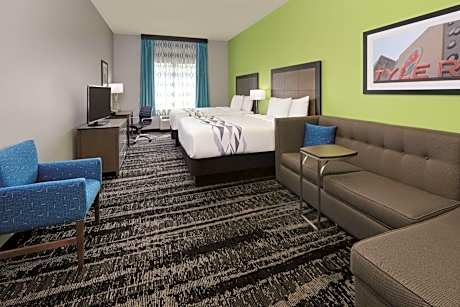 This Tyler hotel, located 5 miles from The University of Texas at Tyler, has free Wi-Fi in all rooms and an indoor swimming pool. Guest rooms at the La Quinta Inn and Suites are furnished with a flat-screen cable TV and a well-lit work desk. In-room refreshment facilities include a microwave, a refrigerator, and a coffee machine. A fitness center with exercise equipment and wall-mounted TV’s is accessible to all guests of the La Quinta Inn and Suites. A business center with a computer and printing services is also provided. Broadway Square Mall is 2 miles from Country Inn Tyler. Caldwell Zoo is 15 minutes’ drive.