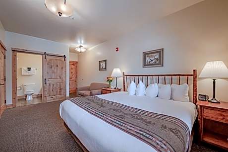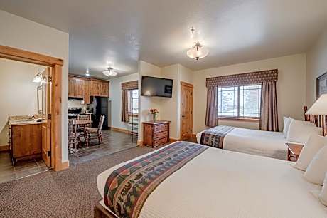 This rustic lodge features individual log cabins, complete with many of the comforts of home and is located on 4 acres of forest, only a short distance from Jackson Hole town center. The Cowboy Village Resort features western-style cabins, equipped with kitchenettes and a combined sleeping and living area. The resort also offers a large outdoor deck, along with barbecue grills and a picnic area. A free continental breakfast is served during the winter Guests at Cowboy Village can find a variety of activities in the surrounding area. Concierge services and ski ticket sales are available. The lodge offers complimentary winter ski shuttle service and is only a short drive from Jackson Hole Airport (9.9 mi away) and Grand Teton National Park (5.6 mi away).