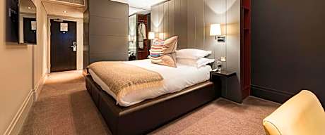 Our modern Classic double Room features a double bed with en-suite shower and a HDTV. In room amenities include Sky package with Sky Sports, crisp cotton linen and sumptuously soft bedding, desk & chair, rainfall shower, luxury toiletries, tea and coffee tray, bottled water, iron & ironing board, complimentary WiFi, hairdryer.