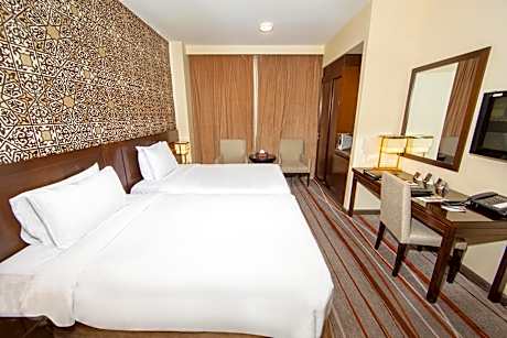 At Dallah Taibah Hotel, exceptional service and top-notch amenities create a memorable experience for guests. Complimentary internet access is available in the hotel to ensure you stay connected during your visit.Arrange your trips to and from the airport using the hotel's convenient transportation services booking.Amenities at taxi offered by Dallah Taibah Hotel simplify the organization of your excursions, tourist activities, and other adventures in Medina. For guests with their own vehicle, parking facilities are provided. Continuously receive the support you require through front desk amenities such as concierge service, express check-in or check-out, luggage storage and safety deposit boxes. At the hotel, their ticket service and tours is also capable of assisting with booking tickets and securing reservations for entertainment and adventures.Always look your best in your preferred attire with the dry cleaning service and laundry service provided at Dallah Taibah Hotel.Craving relaxation? In-room amenities such as 24-hour room service, room service and daily housekeeping allow you to maximize your time spent inside the room. Due to health concerns, smoking is strictly prohibited within the entire premises of hotel.Accommodations come equipped with all the conveniences required for a restful night's slumber. A selection of rooms feature linen service, blackout curtains and air conditioning to ensure your comfort and convenience.A few accommodations at Dallah Taibah Hotel also include unique design elements like a separate living room.A few chosen rooms are equipped with daily newspaper, television and cable TV to ensure guest amusement. In certain rooms, the hotel offers visitors access to a refrigerator, a coffee or tea maker, bottled water, instant coffee, instant tea and mini bar.Dallah Taibah Hotel offers a hair dryer, toiletries, bathrobes and towels in the restrooms of specific accommodations. An additional advantage for guests is the executive lounge, which offers an outstandingly cozy and excellently furnished environment for relaxation. A delightful breakfast is the perfect way to begin your day, and at Dallah Taibah Hotel, you can always indulge in a scrumptious meal on-site. All adore a delightful cup of coffee! An on-site coffee shop ensures you can relish a cup of authentic, freshly-brewed coffee every morning -- or whenever you desire it. Allow your journey to be free from the pangs of hunger! On-site eateries offer delicious and accessible meal choices. At Dallah Taibah Hotel, catering to your unique requirements is our priority. Guests with particular dietary preferences can choose from an assortment of dishes, featuring kosher and halal choices among other options. At Dallah Taibah Hotel, guests can take pleasure in the delightful recreational amenities provided for their entertainment. At the hotel fitness center, you have the option to engage in your daily exercise routine or simply alleviate your jet lag by breaking a sweat.