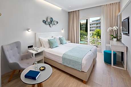 Set on a peaceful garden leading up to the beach, Delfinia Hotel is a 5-minute walk from the Moraitika village center. It offers 24-hour reception service and free WiFi access in all areas. Delfinia hosts a number of sports and entertainment facilities, including swimming pool and children’s pool, children’s playground and play-room, fitness club, 2 tennis courts and table tennis. The complex also features many dining options such as beach-side snack bar, cocktail bar and restaurant. The gardens lead directly to the hotel's private sandy beach, which is equipped with umbrellas and sun beds plus water sports options. Local dancing as well as live music shows are organized around the cocktail bar area. License Number(s): 0829K014A0049800