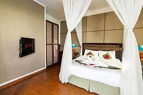 Experience an abundance of unparalleled facilities and features at Desamuda Village. Share your photos and respond to emails at your convenience, thanks to the free Wi-Fi internet access offered by resort. Should you require transportation to or from the airport, resort is able to organize it prior to your arrival date.Taxi, car hire and shuttle offerings at the resort simplify arranging your excursions, explorations, and additional activities in Bali.Visitors can take advantage of complimentary parking directly at the resort.Reception services such as concierge service, express check-in or check-out, luggage storage and safety deposit boxes are available to accommodate your requirements. Securing top-notch tickets and snagging sought-after dining reservations become effortless, thanks to the resort's ticket service and tours. Relax and feel the warmth in the resort's inviting lobby, featuring an enchanting on-site fireplace. Traveling with minimal baggage is achievable at Desamuda Village, as the resort's dry cleaning service and laundry service ensures your garments stay fresh.Room amenities like room service and daily housekeeping contribute to making a perfect selection for your stay. The resort maintains a completely smoke-free zone, providing a breathable atmosphere.Smoking is limited to specified smoking zones.Each accommodation at Desamuda Village is thoughtfully created and adorned to provide visitors with a comfortable, home-like atmosphere.In certain rooms, the resort offers linen service, blackout curtains and air conditioning for guest convenience and satisfaction. At Desamuda Village, the uniquely tailored rooms provide a configuration choice resembling a balcony or terrace. In select rooms, guests at the resort can enjoy top-notch in-room entertainment with television and cable TV available for their convenience.Rest assured, in a few chosen rooms, you will find the convenience of a refrigerator, a coffee or tea maker and bottled water at your disposal. Maintain your cleanliness and comfort using a hair dryer, toiletries and bathrobes available in select guest restrooms. Embark on your holiday experience in the most ideal manner. Commence each morning of your visit with an on-site breakfast. Experience the delight of a fresh morning by savoring excellent coffee at the cafe situated within resort.Should you prefer not to venture out for a meal, the enticing culinary choices at resort are always available for your satisfaction.Experience an unforgettable evening with your fellow travelers just a short distance away, at resort's bar.Visitors who enjoy preparing their own culinary delights will appreciate the presence of an on-site BBQ facilities and shared kitchen at this location. Indulge in the numerous pursuits available at Desamuda Village Hotel. Make certain to allocate time for discovering the shoreline, easily reachable right from the resort.Unwind after a long day by stopping by massage, spa and sauna to rejuvenate your senses. Each day at resort, immerse yourself in the invigorating waters of the pool, perfect for a rejuvenating plunge or a series of revitalizing laps.Bypass the formal attire and choose a laid-back mixed drink or brew at resort's waterside lounge.