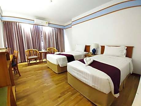 Great care is taken to ensure guests experience comfort through top-notch services and amenities.Stay connected with your associates, as complimentary Wi-Fi is available during your entire visit. The hotel offers taxi, car hire and shuttle amenities for your ease in navigating around Surat Thani.When arriving by car, you'll be grateful for the on-site complimentary parking at hotel.The hotel offers reception amenities including concierge service, luggage storage and safety deposit boxes to ensure a comfortable stay for guests.Should you require assistance, the ticket service and tours can also aid in booking tickets and securing reservations at the finest shows and events in the vicinity.Whether it's an extended stay or simply needing fresh attire, dry cleaning service and laundry service provided by hotel ensures your cherished travel garments stay spotless and accessible. Your stay will be comfortable with the presence of 24-hour room service, room service and daily housekeeping as an in-room amenity for your relaxation and enjoyment.To ensure the well-being and convenience of all visitors, smoking is strictly prohibited throughout the entire hotel.Smoking is permitted solely in the specified smoking zones allocated by hotel.In order to ensure the utmost level of relaxation, the guestrooms feature an inviting design and are equipped with all basic necessities, creating a delightful stay experience. To ensure a pleasant stay, a selection of rooms at hotel come furnished with blackout curtains and air conditioning, all designed with your ease in mind.In select rooms, visitors can enjoy a touch of amusement with the availability of television, in-room video streaming and cable TV for their entertainment needs.Within specific rooms, a refrigerator, bottled water and mini bar is conveniently available for your use. Understanding the significance of bathroom facilities in enhancing visitor contentment, hotel offers a hair dryer and toiletries within a few chosen chambers. Start your day stress-free at Diamond Plaza Hotel Suratthani as breakfast is made available for you on the premises.How about kicking off each day of your getaway with a delicious cup of coffee? At the hotel, relish in the invigorating taste of a freshly brewed, excellent coffee. Various excellent meal offerings at hotel ensure that enticing and easily accessible options are constantly available.Upon arrival, make sure to explore karaoke rooms and bar to experience enjoyable evening entertainment within the premises.Throughout the day, engage in the entertaining activities available at Diamond Plaza Hotel Suratthani. Unwind effortlessly each day by exploring the massage, conveniently situated within the hotel.Unwind by the pool at hotel and cherish a leisurely moment.Guests who enjoy maintaining their fitness regimen while on holiday can visit the fitness center provided by hotel.