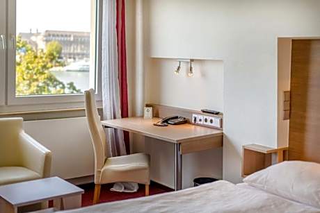 Classic-style room offering a TV, mini-bar and views of the Rhine.