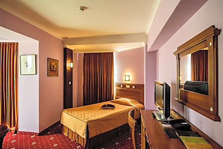 The 4-star design Hotel Diplomat Plaza is in the center of Lukovit. It features a spa center, a heated indoor pool and free WiFi in all areas. All guest rooms at the Diplomat Plaza are equipped with air conditioning, satellite TV, a safe and a mini-bar. Every room also features an individually-decorated private bathroom with a telephone and a bathtub or a hydro-massage shower. Nearby the property, guests can enjoy the picturesque landscape and visit the karst plateau of Lukovit. Hotel Diplomat Plaza is 62 mi from Sofia International Airport and easy reachable from E83 main road. Free on-site car parking is available.