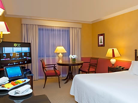 Primely located in Lisbon's center, this deluxe hotel offers elegant guest rooms and views over the city, the Tagus River and São Jorge Castle. Dom Pedro Lisboa Hotel, a member of Radisson Individuals features a full range of spa facilities, with an indoor swimming pool. The spacious guest rooms are decorated in a classical style and come with a flat-screen satellite TV, mini-bar and free WiFi. Some of the suites feature panoramic Lisbon views and the hotel also has the option of a luxurious and spacious Penthouse suite with a 360º view over Lisbon The Spa Aquae offers an indoor swimming pool, hot tub, chromotherapy, Turkish bath, sauna and cardio-fitness room. There are also 3 treatment rooms where guests can enjoy a range of massages and therapies. The hotel also features a gourmet Italian restaurant, "Il Gattopardo" where guests can enjoy Mediterranean-style meals and a vast wine selection on the covered terrace. The "Le Café" is open throughout the day and serves an à-la-carte international menu. The bistro is renowned for its buffet-style Portuguese lunches. The unit is a 10-minute walk from the high-end stores and boutiques of Lisbon's Liberdade Avenue. The lively Docas area of the city and the historical district is approximately 10 minutes away by car. Dom Pedro Lisboa Hotel, a member of Radisson Individuals is located across the street from one of the largest shopping centers in Lisbon, the Amoreiras shopping center. The Dom Pedro Lisboa Hotel, a member of Radisson Individuals is 2461 feet from the nearest Metro station and 4.3 mi from the Lisbon International Airport.