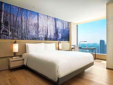 Housed within INDIGO in Jiangtai, Beijing, EAST Beijing l 798 Art Zone l Shopping Mall l Airport l Subway is located a 10-minute drive from Beijing 798 Art Zone and a 5-minute walk from Jiangtai subway station (line 14). Combining luxury with modern décor, it features a year-round indoor pool, a well-equipped fitness center, free Wi-Fi and gourmet cuisines across stylish restaurants and bars. EAST Beijing l 798 Art Zone l Shopping Mall l Airport l Subway is a 35-minute drive from Capital International Airport and a 20-minute drive from Wangjing. Beijing Railway Station is a 30-minute drive away, while Beijing South Railway Station is 35 minutes' drive away. Tastefully decorated, the elegant guestrooms feature floor-to-ceiling windows that overlook the city skyline or the park. Each well-appointed unit is fitted with a flat-screen TV with satellite and cable channels, mini-bar and safety deposit box. The attached bathroom is stocked with bathrobes and slippers. Guests can soothe their tired muscles in the sauna room, enjoy the music and beverages at Xian, or rent a car to explore the charming surroundings. Added conveniences include currency exchange service and an elegant business center. As a spacious and bustling café, Feast (Food by East) with an open kitchen focuses offers an international menu for all day dining. The on-site bar XIAN won the awards of Global Times Best Bar and TimeOut English Reader's Choice and Merit.
